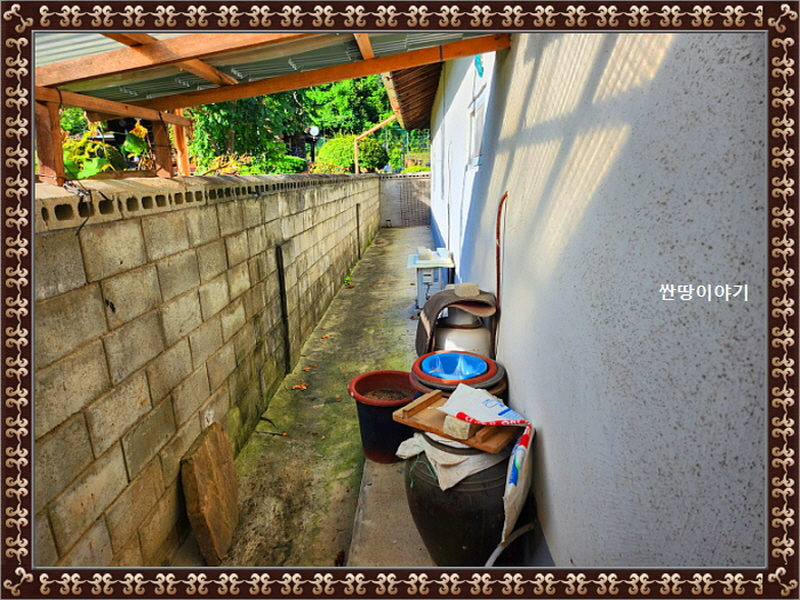 농가주택 뒷쪽부분이며, 담장이 설치되고 주택의 외벽을 보강하여 열손실없는 난방효과 좋습니다.