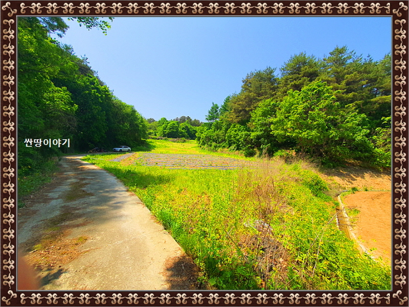 우리토지는 해발220고지이며, 남동향의 지세를 이루고 있는 골짜기 끝 나만의왕국 외진땅입니다.