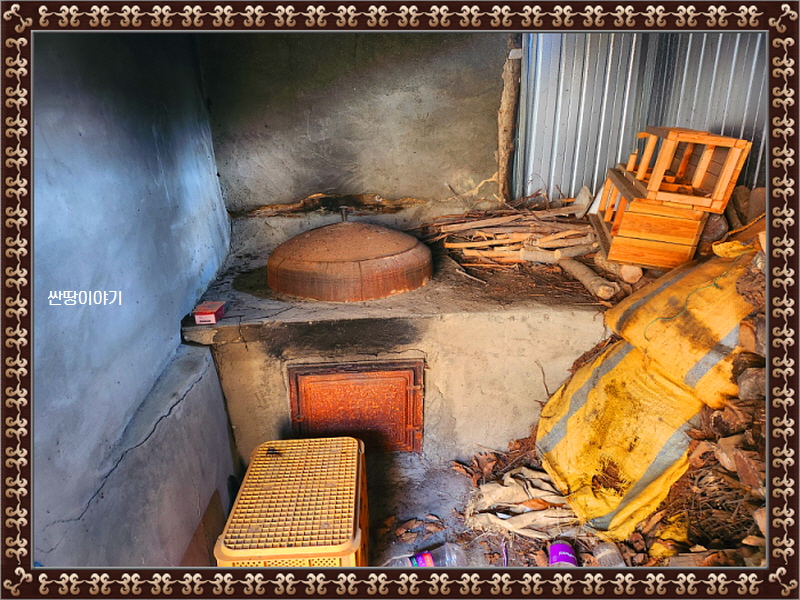 가마솥 걸어놓은 화목아궁이 부분을 바라보았으며, 녹 제거 및 주위 정리후 감성 있는 공간 운영 좋을 듯합니다.
