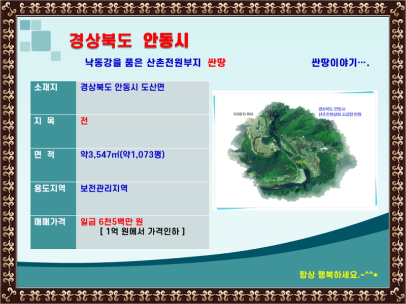 경북 안동시 도산면 가송리 풍광우수한 산촌전원부지에 대하여